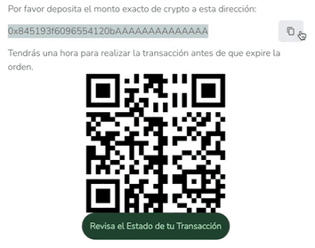 To check your transaction’s status, click the button that will be displayed under the QR code.